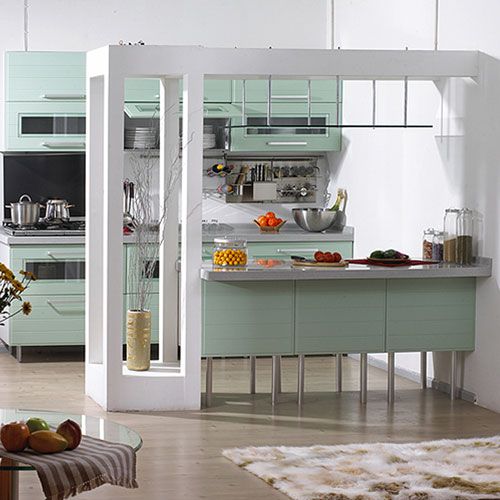 優(yōu)點(diǎn):色澤鮮艷、耐磨、耐刮、耐高溫性能較好,給人以煥然一新的感覺(jué),且櫥柜臺(tái)面高低一致,輔以嵌入式煤氣灶,增加了美的感覺(jué)。