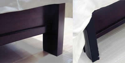 實(shí)木床多半看上去都非常的笨重,而這款床的床尾看上去卻十分簡(jiǎn)潔。床腳處都使用簡(jiǎn)單的線條,并且與地面留有20厘米的距離,既方便清潔床底,人站在床邊也不會(huì)頂?shù)侥_。