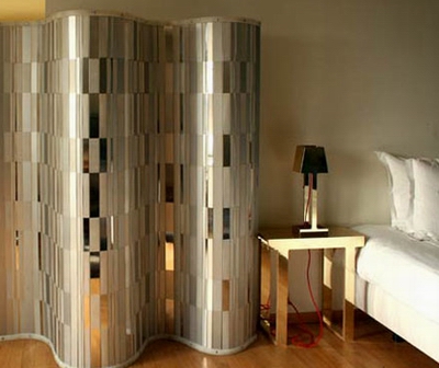設(shè)計(jì)時(shí)尚的屏風(fēng),有時(shí)甚至比擺放在它前面的家具更加吸引目光。這類屏風(fēng)無(wú)論是材料還是設(shè)計(jì)都非常大膽、新穎。選料上,往往擯棄了那些厚重的材料,由透明、輕柔的材料所取代。以往屏風(fēng)主要起分隔空間的作用,而現(xiàn)在更強(qiáng)調(diào)屏風(fēng)裝飾性的一面,薄薄的屏風(fēng),既保持空間良好的通風(fēng)和透光率,營(yíng)造出'隔而不離'的效果。