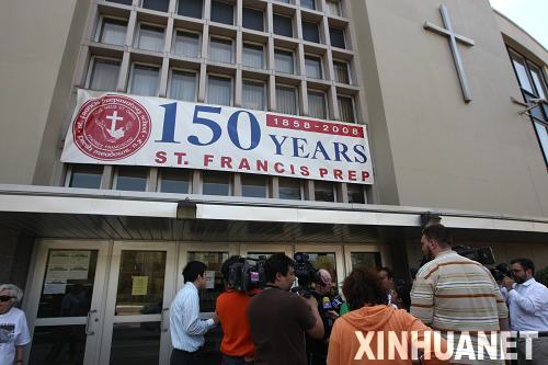 4月26日,眾多記者在美國紐約市皇后區(qū)圣佛朗西斯預(yù)科中學(xué)外采訪。當(dāng)日,紐約市長布隆伯格說,美國疾病控制和預(yù)防中心已經(jīng)確認(rèn),8名來自圣佛朗西斯預(yù)科中學(xué)的學(xué)生感染了豬流感。該中學(xué)已經(jīng)宣布27日和28日停課,但紐約其它學(xué)校學(xué)生仍將正常上課。 新華社記者劉欣攝
