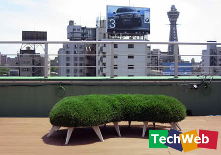 日本某公司設(shè)計了這種長椅,放在公園綠地會非常有效果,椅面是新鮮的草坪,坐下去:純天然的感覺。