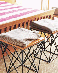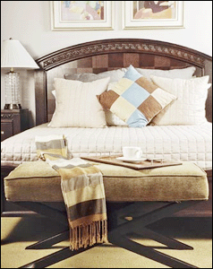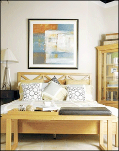 實用主義和浪漫主義可以在臥室并存,但是如果浪漫妨礙到了真正的生活,還是選擇實用為好。如簡單的床尾小幾,或者只是放置一個藤筐,一切以簡單舒適為原則,采用這些簡單的儲物家具,就可以很方便地達到整潔而實用的收納效果。