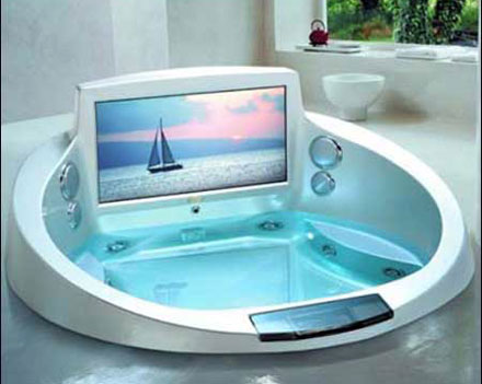 喜歡享受生活的人,沐浴也是一種情趣。很多人會(huì)在自己的浴室里安裝一臺(tái)大電視,這樣就可以泡澡、娛樂兩不誤。但是,如果家里的衛(wèi)生間不夠大呢?國外一家潔具生產(chǎn)商推出了一款自帶電視的水流按摩浴缸。這款浴缸嵌有一部43英寸的高清晰平板電視,以及相當(dāng)不錯(cuò)的音響系統(tǒng),用戶可以使用遙控器方便地選擇電視頻道。不過,這款浴缸售價(jià)不菲--能花3.2萬美元(約合人民幣26萬元)買一個(gè)浴缸的客戶,家里估計(jì)也有一個(gè)足夠放一臺(tái)大電視的浴室了。