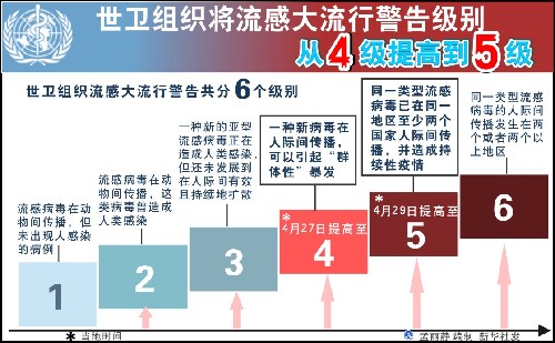 圖表:世衛(wèi)組織將流感大流行警告級(jí)別從4級(jí)提高到5級(jí) 新華社發(fā)