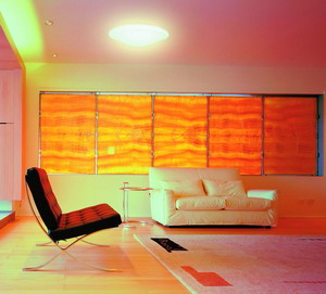 一般來(lái)說(shuō),客廳的面積較大,采用光檐照明可以讓每一個(gè)角落都能得到光的撫慰。這種照明主要有兩種形式:一是利用與墻平行的不透光板遮擋光源,給墻壁帶來(lái)藝術(shù)的光照效果;二是讓光檐開(kāi)口朝上,使燈管經(jīng)頂棚反射下來(lái),給頂棚以漂浮的感覺(jué)??梢哉f(shuō),光檐照明體現(xiàn)了藝術(shù)照明的魅力,具有照明與裝飾的雙重作用,由于沒(méi)有裸露的光源與燈具,整個(gè)室內(nèi)空間顯得完整而且無(wú)眩光,光檐發(fā)出的光在空間中分布得均勻柔和,這樣就能營(yíng)造出溫暖的感覺(jué)。