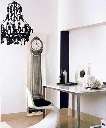 一條簡(jiǎn)單的黑色長(zhǎng)條色塊增加了角落的深 度,本來(lái)容易被忽視的角落反而成為了居室里的亮點(diǎn)。其它配飾的選擇除了顏色非黑即白之外,最 好選擇不同的材質(zhì)和質(zhì)地,這樣就會(huì)有既豐富又單純的效果。