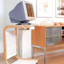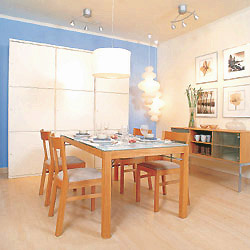 田小姐在家工作的時間不長,所以沒有準備專門的書房。她用一個推拉柜放電腦,餐桌當書桌,需要短暫辦公的時候就把電腦拉到餐桌邊,2分鐘之內就能開工了,很方便。電腦不用的時候放在餐廳角落里就行。