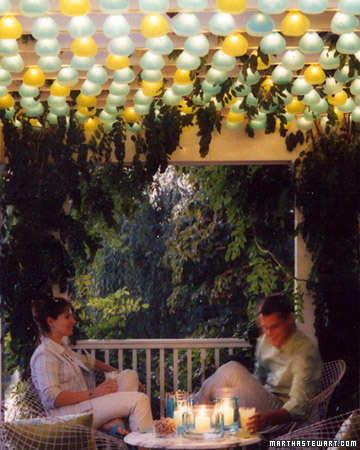 5. 涼亭燈飾 將五顏六色的燈泡懸掛在爬滿藤莖的涼亭下,營造一種節(jié)日的浪漫氛圍,特別適合兩個人的戶外燭光晚餐。