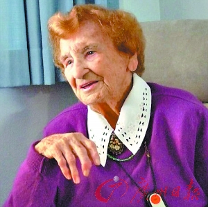 百歲老人奧利芙·賴(lài)?yán)闪嘶ヂ?lián)網(wǎng)明星。