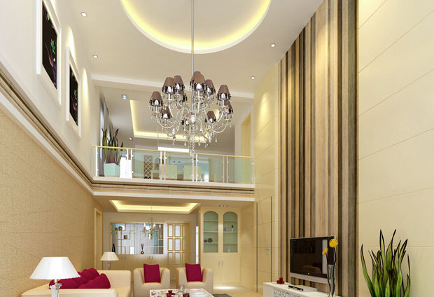 客廳是全家活動的場所,聊天、讀書和看電視是客廳中的主要活動,寫作和就餐也在客廳中進行,同時也是接待貴賓客的場所。因客廳具有多種不同的用途,所以在燈具的選擇上應(yīng)以藝術(shù)強的燈具為主,同時還需要與建筑形式和室內(nèi)裝飾風(fēng)格及布置相協(xié)調(diào),體現(xiàn)出美好的氣氛,給人留下深刻的印象。