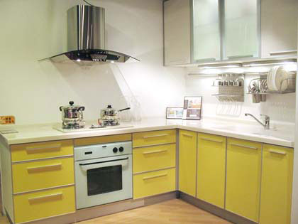 2.地柜也有貯存功能,同時(shí)地柜中洗滌柜、料理柜和灶柜是必選件。洗滌柜、灶柜在料理柜左右,灶柜上面正對著煙機(jī)柜。