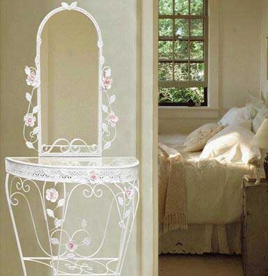 還有一個(gè)方法就是選擇新古典或是美式鄉(xiāng)村家具風(fēng)格的梳妝臺(tái),這種風(fēng)格的梳妝臺(tái)線條比較簡(jiǎn)潔,但又不失大氣,其中不少立式梳妝臺(tái)是與梳妝鏡分開(kāi)的,大可配上一面風(fēng)格夸張的現(xiàn)代感梳妝鏡,增加其獨(dú)特氣息。