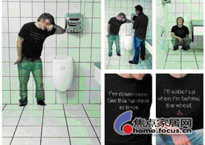 概要: 是個非常有創(chuàng)意的廁所瓷磚廣告,突然走進(jìn)廁所一定會以為有人醉倒在地上,它是要提醒大家不要酒後開車,每個廣告人物的衣服上都有寫著不同的句子,也充滿了幽默感?! justneedtogetitoutofmysystem。(我需要把它吐出來)廁所瓷磚的創(chuàng)意1 I'llsoberupwhenI'mbehindthewheel。