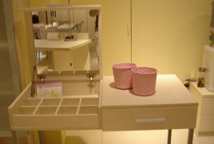 梳妝臺的尺度一般可分為兩類。第一類:梳妝者可將腿放入臺面下,優(yōu)點是人離鏡面近,面部清晰,便于化妝,平時還可將梳妝凳放入臺下,不占空間。第二類梳妝臺采用大面積鏡面,使梳妝者可大部分顯現(xiàn)于鏡中,并能增添室內(nèi)的寬暢感。
