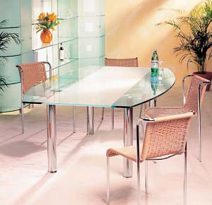 使用貼士:目前市場(chǎng)上的玻璃餐桌多時(shí)鋼化玻璃材質(zhì),雖然堅(jiān)硬耐溫,但必須仔細(xì)挑選合格和強(qiáng)度高的強(qiáng)化玻璃餐桌,以免熱物引起桌面爆裂,尤其是有幼兒的家庭盡量不要選擇玻璃餐桌。