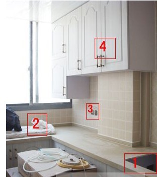 4、櫥柜(安裝完畢):碗柜的頂層不能超過(guò)180cm,底層不得低于85 cm,寬度不得超過(guò)45 cm,否則會(huì)拿放物品會(huì)造成不便。