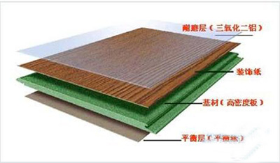 1.表層為耐磨層,是在裝飾層上附著的一層極細的三氧化二鋁,具有較好的耐磨性和隔熱阻燃性。三氧化二鋁的含量、表面薄膜的厚度和加工工藝,決定著強化地板的耐磨性,耐劃痕,耐香煙灼燒,耐污染腐蝕等。