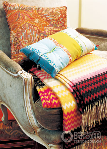 靠包和毛毯可以有很多種不同的搭配,天空藍(lán)與湖水綠,條紋與印花相互混搭都是不錯的選擇。
