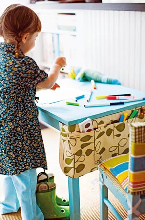 裝園藝工具的帆布袋經(jīng)過一點(diǎn)微小改動(dòng)后成為孩子們的畫筆收納袋,尼龍搭扣的設(shè)計(jì)讓袋子伏貼于桌子旁邊,從此寶貝兒的畫筆就不會(huì)再到處亂滾了。