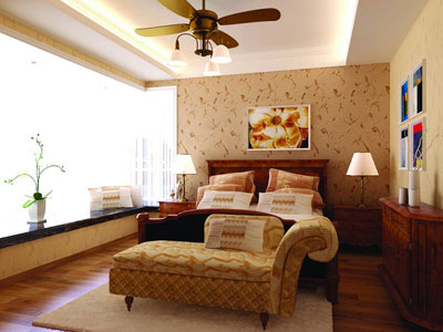 幾張色彩跳躍的裝飾畫,讓空間顯得活躍了很多。臥室采光充足,飄窗設(shè)計(jì)讓臥室更加休閑舒適。為了避免空間過于單調(diào),設(shè)計(jì)師選用了花瓣圖案的壁紙,讓空間多了更多靈動的氣息。