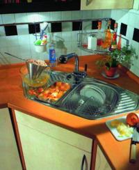 瞬間表現(xiàn):水槽上有可以暫時放置將洗或已洗器皿的瀝水筐,不用擔(dān)心跟正在洗的物品混放在一起。