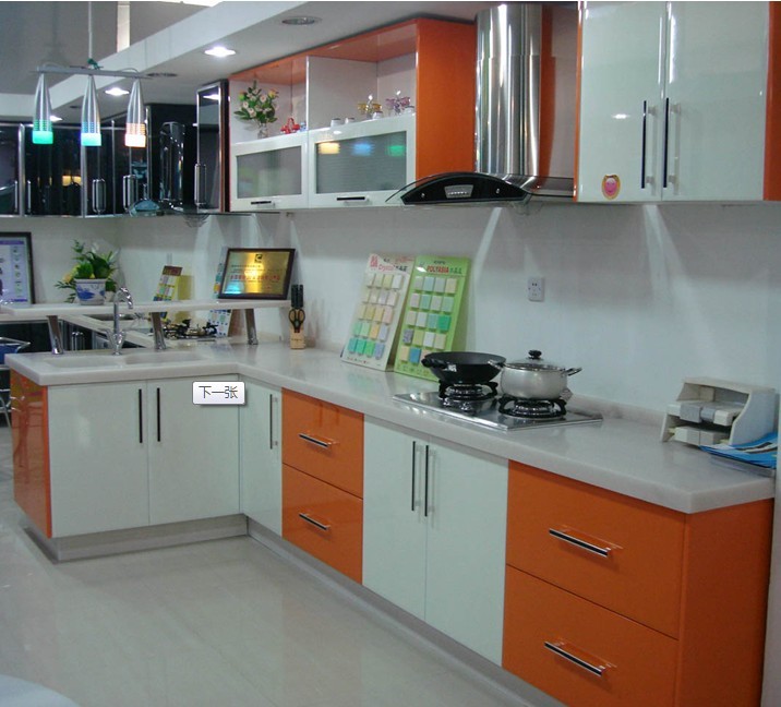 洗滌柜、灶柜在料理柜旁,灶柜上面正對著煙機(jī)柜。