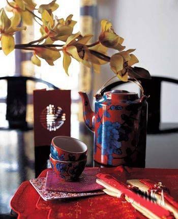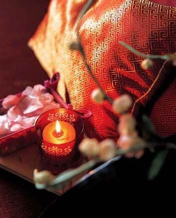 餐廳:食色雙馨 大多數(shù)居室中的餐廳都靠近客廳,所以在整體布置上,要考慮到與客廳的風(fēng)格相協(xié)調(diào),同樣物件的擺設(shè)不要過(guò)于繁雜。但餐廳的布置上可以多些濃烈的色彩,所以在婚慶氣氛中的餐廳,可大膽地多用些紅色,畢竟,鮮艷的顏色有增進(jìn)食欲的效果。在具體布置上,可以適當(dāng)增加些瓷器的擺設(shè),不僅凸現(xiàn)了餐廳的就餐功能,同樣代表中國(guó)的瓷器的運(yùn)用也呼應(yīng)了整個(gè)中式婚慶的家居風(fēng)格。中式餐廳中出現(xiàn)的織物不是很多,但紛繁的中式織物卻最能烘托婚慶的喜氣。所以,在餐桌上擺放各種鮮艷的中式刺繡的餐墊、杯墊,會(huì)起到畫(huà)龍點(diǎn)睛的效果。鮮花同樣也是布置中式婚慶餐廳的法寶,不可貪多,點(diǎn)到為止即可。餐桌燈的挑選不必拘泥傳統(tǒng),同一風(fēng)格不同造型的餐桌燈懸于桌上,反而倍添情趣?;ㄆ考跋灎T也不必拘泥于中式風(fēng)格,但同樣的大紅色彩融于整個(gè)中式婚慶氣氛餐廳內(nèi)不僅不顯突兀,反倒渾然一體。