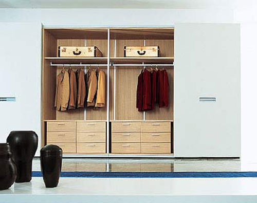 優(yōu)缺點(diǎn):比較好的一種形式是利用一面空墻存放,不完全封閉。優(yōu)點(diǎn)是空氣流通好,寬敞。不過缺點(diǎn)是防塵差,因此防塵是此類衣帽間的重點(diǎn)注意事項(xiàng),可采用防塵罩懸掛衣服,用盒子來疊放衣物。為便于區(qū)別,可增加一些標(biāo)志。若多設(shè)一些抽屜、小柜,則更為實(shí)用。