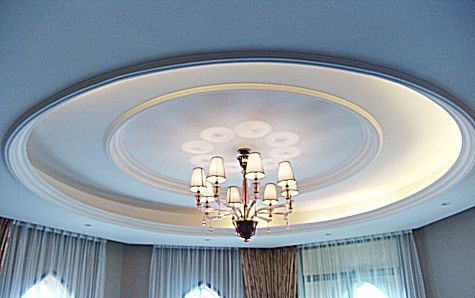 假天花為遷就屋頂?shù)臋M梁而壓得太低,無(wú)論在風(fēng)水方面或設(shè)計(jì)方面均不宜。在這種情況下,可采用四邊低而中間高的假天花布置,這樣一來(lái),不但視覺(jué)較為舒服,而且天花板中間的凹位便會(huì)形成聚水的天池,對(duì)住宅風(fēng)也會(huì)大有裨益。若在這聚水的天池中央懸掛一盞金碧輝煌的水晶燈,則會(huì)有畫龍點(diǎn)晴之妙,但勿在天花板上裝鏡,此乃風(fēng)水大忌。