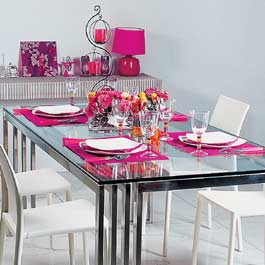 節(jié)日的餐廳里可以考慮增設(shè)一面主題墻,集中展示家里的一些美麗飾品,渲染聚餐氣氛,把玄關(guān)的條案,擱架換過(guò)來(lái)做展示架,效果可能不錯(cuò)哦。