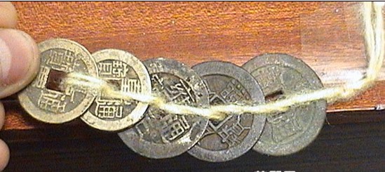 2、銅錢(qián)放在大門(mén)右側(cè),以黃線或黃線串上掛起:可防家中女性口舌過(guò)重,凡是家有女性嘈吵均可掛之。