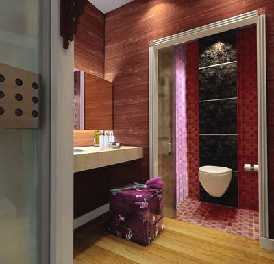 空間不大,也許可以說有點(diǎn)兒局促。但即使在這么個(gè)小小的角落,衛(wèi)浴的主人都沒忘了給環(huán)境打上“格子”。在柔和的主色調(diào)中,粗獷的藍(lán)色瓷磚勾勒出幾道輪廓,整個(gè)空間立刻顯得整齊了很多。另外,黑色的浴巾和紅色的毛巾球在背景色中非常醒目,給人眼前一亮的感覺。衛(wèi)浴的主人不是一個(gè)可以忍受平庸的人,他喜歡通過小心思來(lái)創(chuàng)造生活的亮點(diǎn)。不要以為這種亮點(diǎn)僅限于視覺上的小小刺激,在索然無(wú)味的生活中,他會(huì)時(shí)不時(shí)創(chuàng)造些小驚喜。