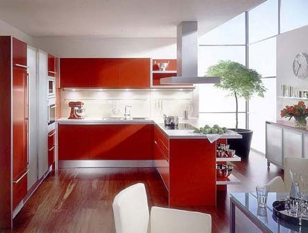 熱情奔放,充滿喜慶的色彩。年輕的新婚夫妻采用紅色最為貼切,不僅能體現(xiàn)出主人強(qiáng)烈、大膽的個(gè)性,更能展現(xiàn)青年生機(jī)勃勃的朝氣,顯示華貴。另?yè)?jù)測(cè)試,紅色能使食欲達(dá)到高峰。紅如朝陽,白如軟玉的紅白相間組合,利用白的溫和稍稍沖淡紅色造成的單調(diào)感覺,使整體更富變化,更有生氣。紅與黃的搭配有一種壓得住的熱烈,輔以老式家具喜慶吉祥的用色手法,會(huì)使櫥柜顯出一派欣欣向榮的新氣象。