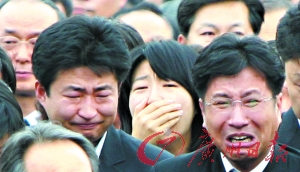 5月23日,韓**下村,盧武鉉的遺體抵達(dá)自己的家鄉(xiāng),他的兒子盧建昊(左)和女兒盧靜妍(中)痛哭流涕。 CFP供圖