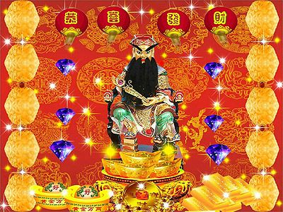除了迎財(cái)神之外,祭祀財(cái)神也是必不可少的。每到春節(jié),舉國(guó)各地均祭祀財(cái)神,祭祀方法各異。北方地區(qū)春節(jié)時(shí),家家請(qǐng)回財(cái)神,供奉財(cái)神像,焚香上供品。正月初二清晨祭焚財(cái)神像。祭祀時(shí)邊行禮邊誦祝詞:“香紅燈明,尊神駕臨,體察苦難,賜富百姓。窮魔遠(yuǎn)離,財(cái)運(yùn)亨通,日積月累,金滿門庭。南方敬祭財(cái)神供品內(nèi)容特別講究,供品共分三桌:第一桌為果品,有廣橘,示生意廣闊;第二桌為糕點(diǎn),多用年糕,意為年年高,糕上插有冬青枝,意為松柏常青;第三桌為正席,有豬頭,全雞,全鴨,全魚等等,有招財(cái)進(jìn)寶、魚躍的吉意。祭祀時(shí),主人點(diǎn)燃香燭,眾人頂禮膜拜。人人滿懷發(fā)財(cái)?shù)南M?,祈愿在新的一年里大發(fā)大富。