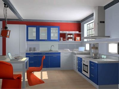 藍(lán)色與黃色的柜體在充足的光線下,格外清新醒目,二者搭配顯出成熟和典雅,彼此相得益彰,和諧中不失靈活。用橘紅色點(diǎn)綴藍(lán)色櫥柜,使深沉中增加一種明快與活躍?;宜{(lán)為主調(diào)的大膽色彩運(yùn)用,會讓人耳目一新,清爽心情油然而生。此外,淡藍(lán)樸素清澈;深藍(lán)前衛(wèi)摩登。