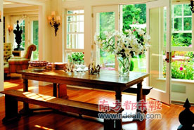 如果說廚衛(wèi)的裝修是主人生活質(zhì)量的反映,那么客廳的裝修則是主人的審美品位和生活情趣的反映,講究的是個性。廚衛(wèi)裝修可以通過裝成品的"整體廚房""整體浴室"來提高生活質(zhì)量和裝修檔次,但客廳必須有自己獨到的東西。不同的客廳裝修中,每一個細小的差別往往都能折射出主人不同的人生觀及修養(yǎng)、品位,因此設(shè)計客廳時要用心,要有匠心。個性可以通過裝修材料、裝修手段的選擇及家具的擺放來表現(xiàn),但更多地是通過配飾等"軟裝飾"來表現(xiàn),如工藝品、字畫、座墊、布藝、小飾品等,這些更能展示出主人的修養(yǎng)。