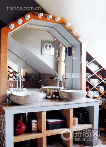 李慧并沒(méi)有為家中的基材大費(fèi)周章,采購(gòu)起來(lái)當(dāng)然簡(jiǎn)單。純色的墻漆,質(zhì)樸的地面,只要環(huán)保,簡(jiǎn)單地打底才能賦予空間更大的自由度。從機(jī)場(chǎng)路邊的石雕市場(chǎng)淘來(lái)的花園水池造景石雕,還有每個(gè)衛(wèi)生間不同的石鑿池盆,最美的就是主衛(wèi)中兩個(gè)嵌在圓石中的瓷盆,猶如兩塊半包在皮子中的潤(rùn)玉,令人愛(ài)不釋手,不禁感嘆:“這怎會(huì)是路邊淘來(lái)的便宜,放到任何一個(gè)高檔衛(wèi)浴店都會(huì)價(jià)值不菲?!?