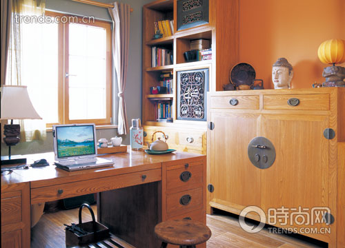 女主人的書(shū)房,從柜門(mén)的荷葉到小暖瓶,每個(gè)細(xì)節(jié)都體現(xiàn)出懷舊的人文氣息。