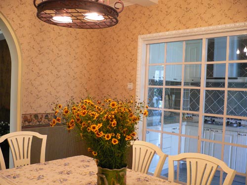 5、避免使用瓷磚腰線,因?yàn)楠M小的空間使用腰線會(huì)令空間顯得雜亂、煩瑣,但可適當(dāng)鋪貼幾片花片進(jìn)行點(diǎn)綴,使得廚房間流露出幾許生機(jī)和浪漫。