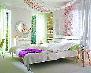 歐美古典主義風格的床上布藝用品,在材料選擇方面,以純棉、綢緞、錦緞等素材,制作出印花、刺繡、提花三款床具式樣。在細節(jié)創(chuàng)意上,則注重蕾絲花邊的加工,極力營造立體美。色彩方面,永不落伍的白色,依然是設計的重點,為彰顯雪白床具的潔凈細致,在細部花紋上則用鑲繡、鏤花、緞帶造型,營造雅致的感覺。其他的淡黃、淺菊、淺褐等風格清新的床飾十分適合炎夏使用。此外,亮眼的流行色(亮菊、寶藍、艷紅、鮮黃)和各式充滿海洋、陽光、庭園的圖形,增添室內迷人的風采,為消費者帶來法式的浪漫與溫柔。