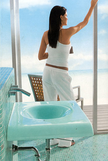 空間決定形式。洗臉池大致分成獨(dú)立式和臺(tái)式兩種。獨(dú)立式的造型美觀、占地面積小,并便于維修,適合空間不大的衛(wèi)生間。但它需要配備鏡箱或盥洗架,以便利用池子上方的空間擺放一些洗漱用具及化妝品等。臺(tái)式洗臉池至少要占據(jù)一張小課桌的空間。它的臺(tái)面上可放洗漱用具,下面的柜子還能放雜物。如果衛(wèi)生間面積不大,可以考慮在墻角安裝一種三角形的洗臉池,池子的上方可掛一個(gè)三角的雜物架,以存放洗滌用品。
