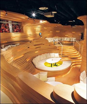 初次走進(jìn)SongClub的人多少會有些迷惑,這個(gè)充滿藝術(shù)感的空間從設(shè)計(jì)感覺上更像一個(gè)室內(nèi)的山地梯田——層層疊疊的起伏充滿動(dòng)感。