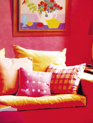 金黃色令人聯(lián)想起秋天豐收的稻田、成熟飽滿的瓜果,因此想在家中添一份豐收歡慶的感覺,金黃色可是首選。一般而言,金黃色給人強烈的視覺沖擊力,適宜用柔和的白色去調(diào)和。在家具設(shè)計中,古典歐式家具較多運用金黃色,營造豪華浪漫的氣氛。可以將夏天沙發(fā)上的淺藍色沙發(fā)套換上一件金黃色的“新衣”,再隨意地放上幾個紅色或者紫色的靠枕,平添一層秋日的暖意。又或者撤下擺放在餐桌上的小花籃,換上一盤造型逼真的水果擺設(shè),將豐收的喜悅帶到餐桌上。代表秋天的花卉品種有向日葵、波斯菊等,將它們與青黃斑駁的樹葉放在一起,同樣可以為家居帶來鮮活的秋天色彩。