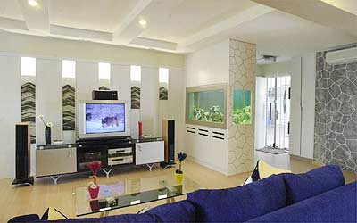 概要: 魚缸筑墻,不但讓人眼前一亮,而且能讓客廳享有更多隱私 把嗜好融入家居布置中,空中少爺?shù)聂~缸成了他與妻子愛巢的一大特色;配合上房子開放式的格局布置,寬敞無阻,家居生活如魚得水?! ∵@間5房式組屋,客廳、飯廳、廚房和消閑房都采取開放式的設(shè)計(jì),讓整個(gè)空間顯得額外寬敞。寬敞的設(shè)計(jì),正是屋主對房子裝修的最大要求。