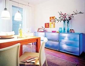 現(xiàn)代高科技給人們帶來了更多的色彩選擇。餐廳的色彩設(shè)計(jì)其實(shí)非常重要,通常以接近土地的顏色,如棕、棕黃或杏色,以及淺珊瑚紅接近肉色為最適合,如果用灰、芥茉黃、紫或青綠色常會叫人倒胃口,應(yīng)該避免。如果你正在節(jié)食減肥,可把餐廳布置成使人產(chǎn)生涼爽感的藍(lán)色、綠色或灰色,你還會感受到食物的美味,但你胃口卻“變小”了。