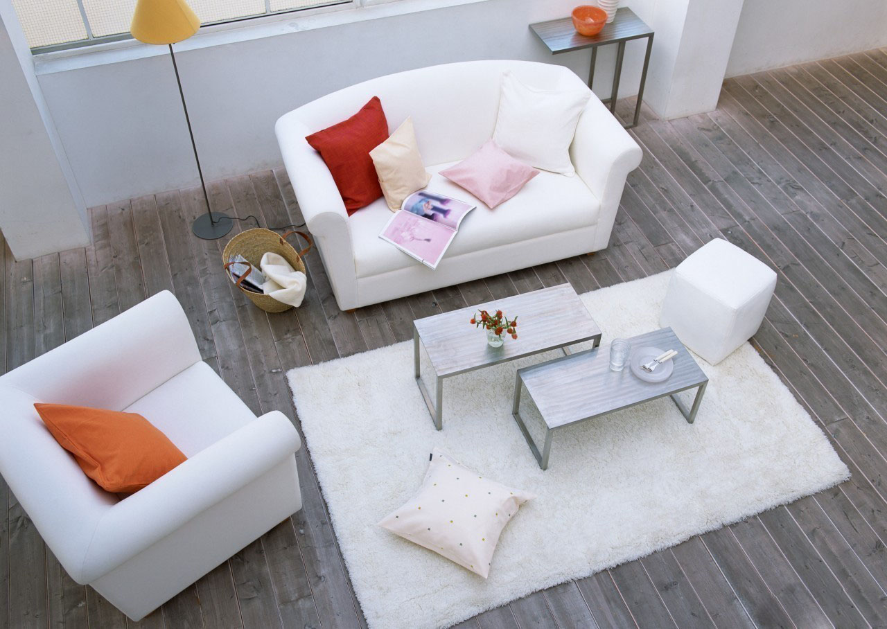 在空間允許的前提下,煙棕色實(shí)木地板,純白的長毛地毯,純白的布藝沙發(fā),多彩的沙發(fā)靠墊…………80后超愛的休息空間。
