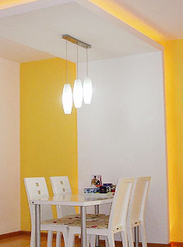 餐桌是格外需要烘托的。有人說一張餐桌就是一個任由您打扮的模特。為了要顯出它獨特的風格,可選擇不同的桌布,如簡樸的麻質桌布表現(xiàn)出一種傳統(tǒng)風味,鮮艷明亮的桌布則能令人感到一種歡快活潑的氣息。另外,餐桌上方配以合適的燈具,既能讓人領略美食的“色”之美,又能營造出一種迷人的氛圍。在精心打扮的餐桌旁和親朋好友一起享用一頓精心烹調的晚餐,濃濃樂趣,盡在其中。