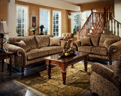 客廳:客廳作為待客區(qū)域,一般要求簡潔明快,同時裝修較其它空間要更明快光鮮,通常使用大量的石材和木飾面裝飾;美國人喜歡有歷史感的東西,這不僅反映在軟裝擺件上對仿古藝術品的喜愛,同時也反映在裝修上對各種仿古墻地磚、石材的偏愛和對各種仿舊工藝的追求上??傮w而言,美式田園風格的客廳是寬敞而富有歷史氣息的。