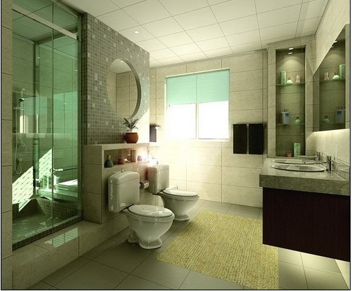 要把衛(wèi)生間裝飾得簡(jiǎn)潔實(shí)用,最簡(jiǎn)單的辦法就是合理擺放柜臺(tái)及衛(wèi)生潔具。在目前的情況下,擱板式帶柜衛(wèi)生潔具三件套組合,在用材和顏色搭配上是最普遍、實(shí)用、簡(jiǎn)潔的裝飾方法。而相拼式潔具三件套組合,在浴缸上方的角落安裝上了玻璃板,一般都能給人精巧的感覺(jué)。大理石盆面配置面配置擱板方式結(jié)構(gòu),然后配上潔具的單件組合,也能使衛(wèi)生間顯得清爽明快。